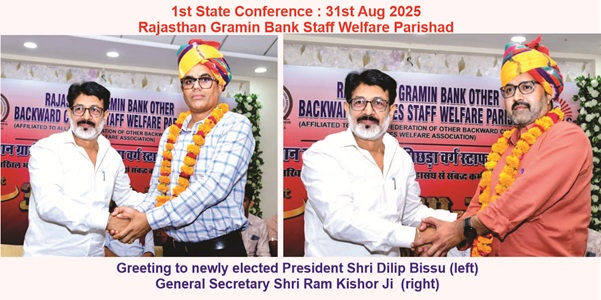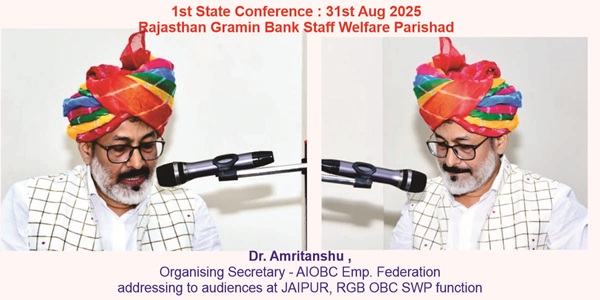 31 अगस्त 2025 को जयपुर में राजस्थान ग्रामीण बैंक ओबीसी स्टाफ कल्याण परिषद का पहला अधिवेशन संपन्न हुआ।