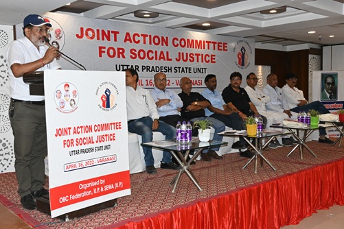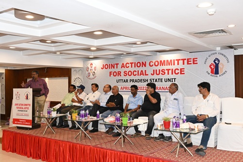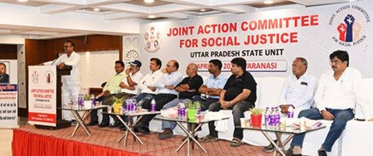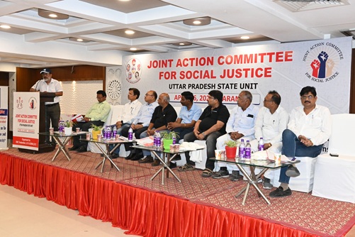 Under the leadership of Shri G.Karunanidhy, a Joint Action Committee Meeting was held at Varanasi in 2024. Union Bank OBC Association, SEWA, Income Tax, SC ST Association of Uttar Pradesh and other Social Groups, teachers, Students have participated in the Meeting.