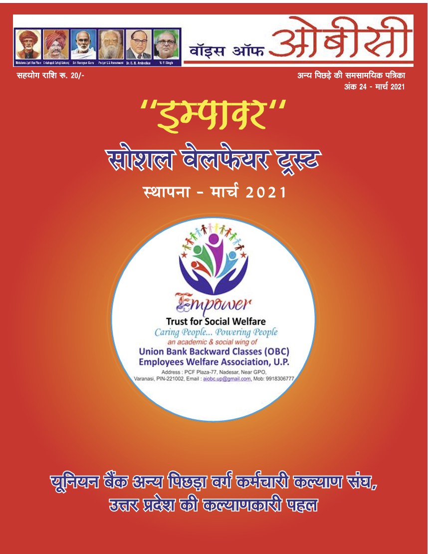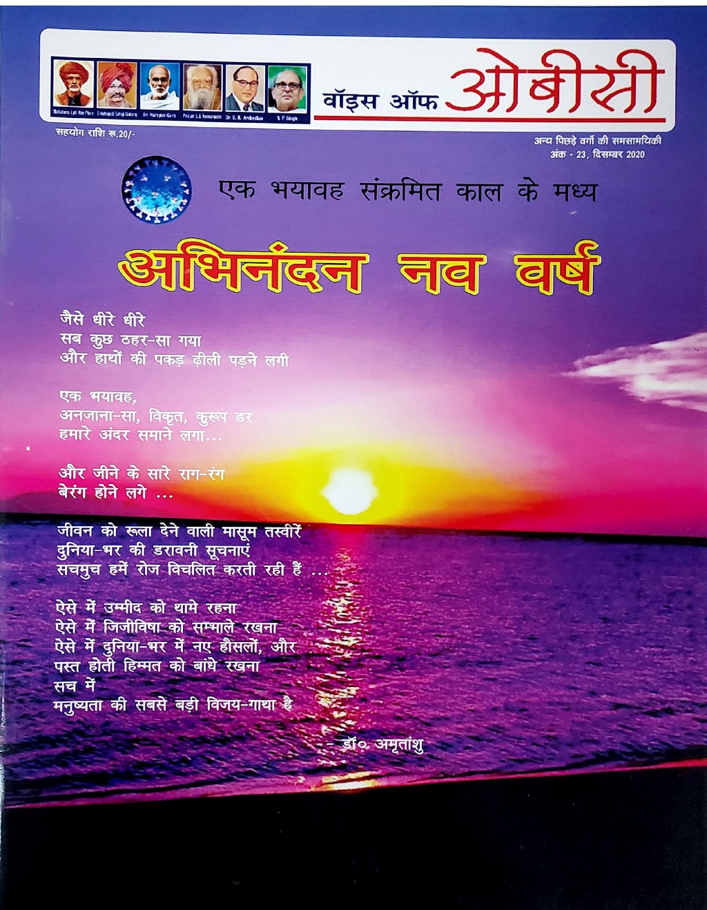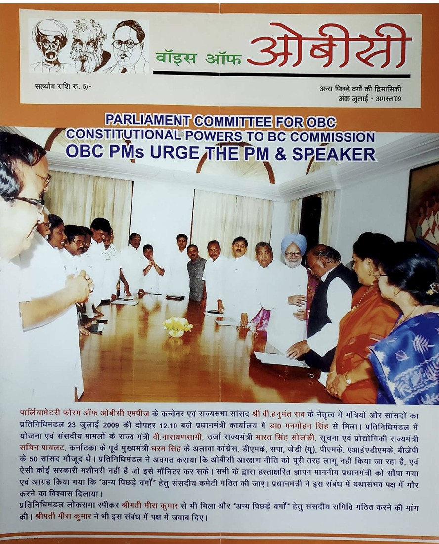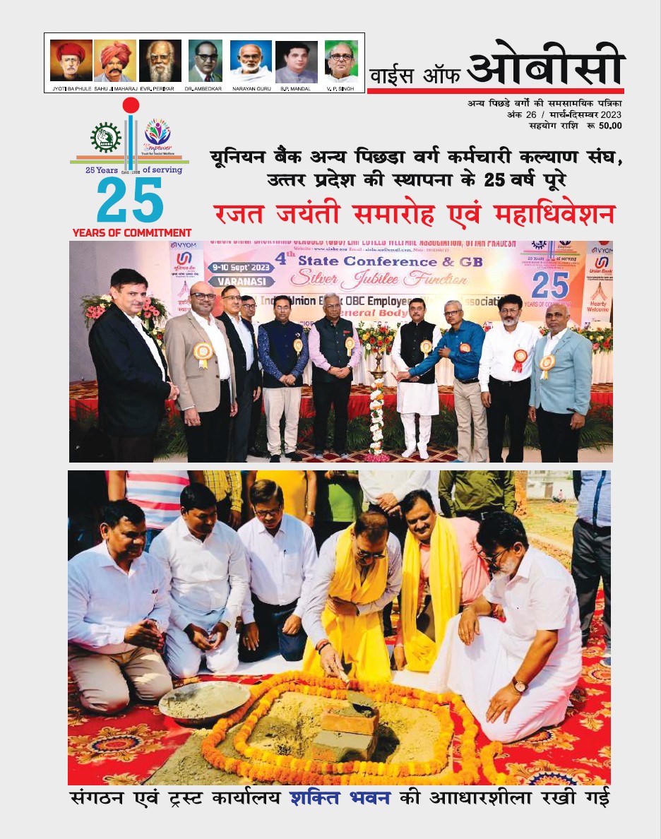 Voice of OBCs is a Hindi-English bilingual news magazine, which has been publishing since 1st January 2009. It is a completely informative and publishing on periodical basis. GO,  DoPT, MoF guidelines, related to OBCs (Employees / Public), Creamy Layer guidelines etc. are published to make OBCs people aware of the rules and privileges. We hope people will be benefited from this magazine. – EDITOR